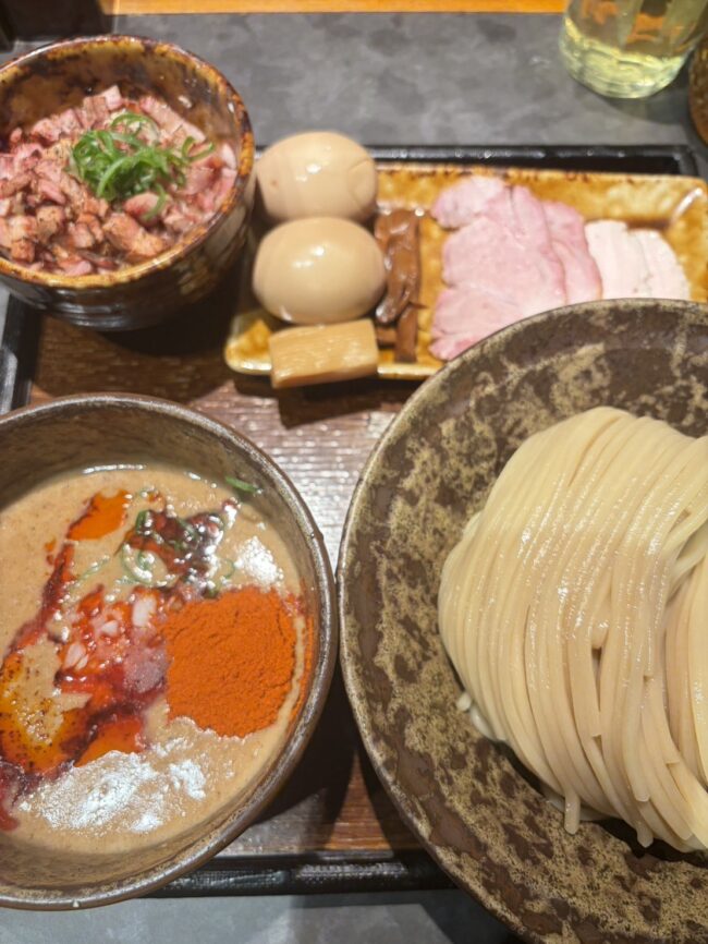2026年1月7日 2026年初ラーメン こんにちは。2026年今年も始まりましたね。皆様、どんな年末年始を迎えられましたか。僕は、実家に帰省をしまして食べて飲んで寝ての繰り返しでした。ただ、年末年始は大好きなラーメン屋がやっていないので後半はラーメンロスになり年始一発目は何を食べようかと調べに調べ欲望を抑えるのに必死でした笑そして新年になり、本日やっとラーメン解禁です!!!今年一発目はつけ麺!!!しかも初めて行くつけ麺屋です。場所は池袋、その名も「つけ麺 遷 sen(せん)」「節骨麺たいぞう」を展開する 株式会社プロジェクトジャパン が新ブランドのつけ麺専門店を開業したお店でございます。場所は池袋駅西口から徒歩3分ほどの「節骨麺たいぞう 池袋総本店」の後物件。予想はしていましたが到着したらもう長蛇の列。回転は速く30分くらいで入店できました。店内は清潔感がありカウンターも広々していてとてもゆっくりできました。メニューは色々悩みましたが味玉辛つけ麺の大盛り!!麺の量は比較的少ないのでしかっり食べたい方は大盛りがおススメです。味の方は、コシのある中太ストレート麺から、これでもかってくらい小麦が香りおいしいです!!!つけだれは想像してたよりもものすごくドロっと濃厚!!チャーシューも鶏もこのつけだれにめちゃくちゃ合います。ぺろりといただき最後はスープ割で締めます。体もあったまりこれはリピート確定店です。新年一発目良いスタートが切れました。今年も食レポ中心に、プラスアルファ―本日のおやつなんかも掲載していこうと考えております笑もちろんスーツ情報も掲載致しますので今年もTagliArteを宜しくお願い致します。TagliArte表参道